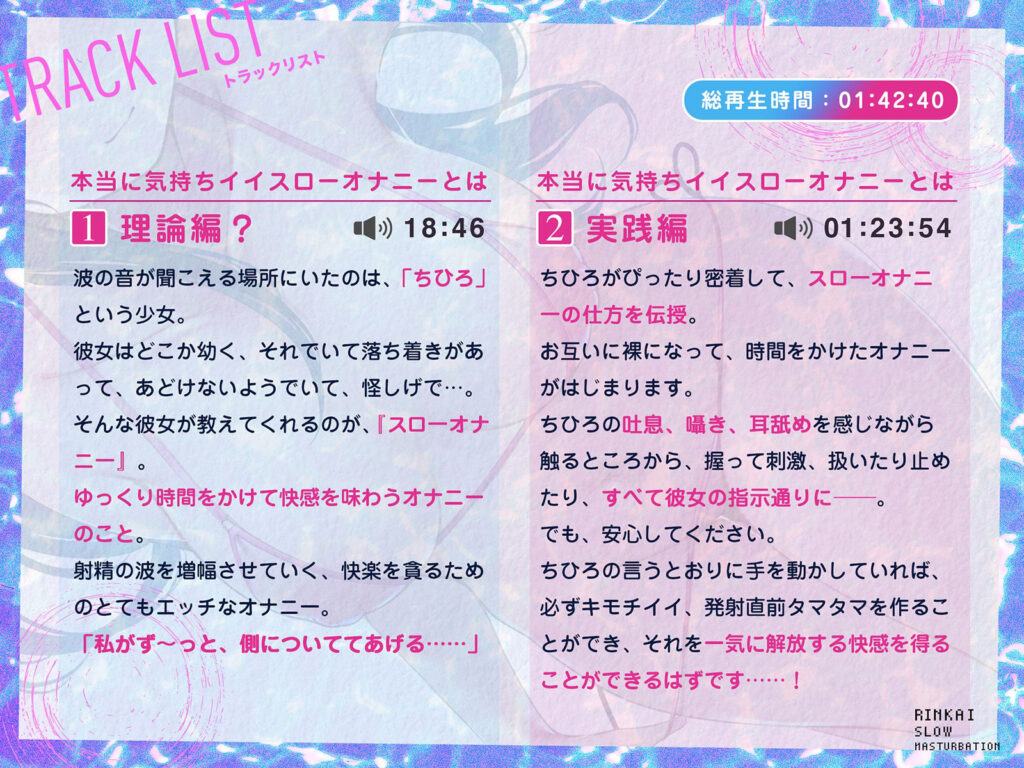 今すぐ読む本編を読む【音イキ体験!】音の媚薬〜聞こえない音で絶頂誘発!超敏感になって腰からトロトロに溶ける音〜品番: d_316731発売日: 2023年12月19日ボリューム: 4本 (約91分)ジャンル: 中出し、フェラ、ドラッグ、男性向け、成人向け、ASMR、耳舐... -
